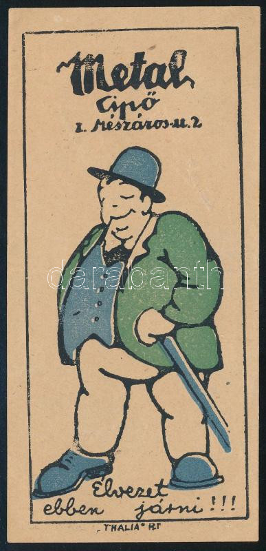 Metal cipő számolócédula. "Élvezet ebben járni!!!" https://www.darabanth.com/de/477-Fernauktion/477.0/Kunst-Dokumente-andere-Sammelgebiete/Werbungen~2000002/Metal-cipo-szamolocedula-Elvezet-ebben-jarni~II3192085