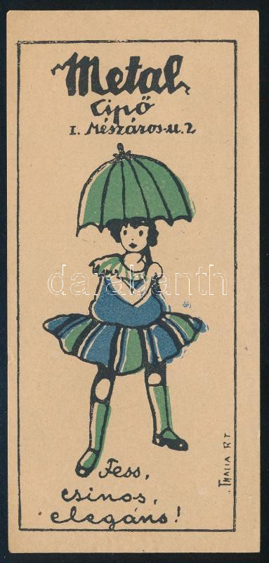 Metal cipő számolócédula. "Fess, csinos, elegáns!" https://www.darabanth.com/de/477-Fernauktion/477.0/Kunst-Dokumente-andere-Sammelgebiete/Werbungen~2000002/Metal-cipo-szamolocedula-Fess-csinos-elegans~II3192094
