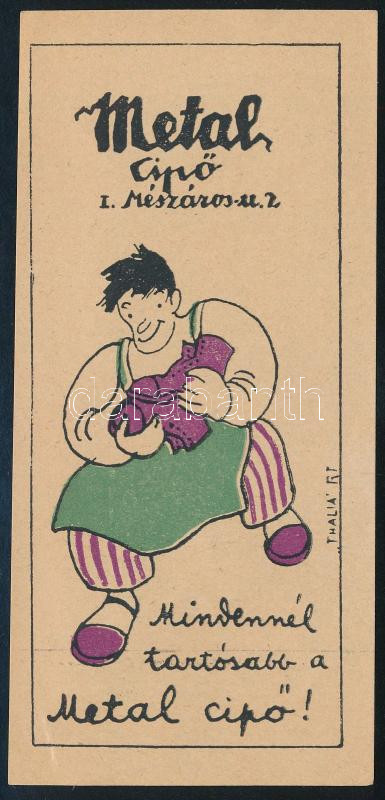 Metal cipő számolócédula. "Mindennél tartósabb a Metal cipő!"... https://www.darabanth.com/de/477-Fernauktion/477.0/Kunst-Dokumente-andere-Sammelgebiete/Werbungen~2000002/Metal-cipo-szamolocedula-Mindennel-tartosabb-a-Metal-cipo~II3192119