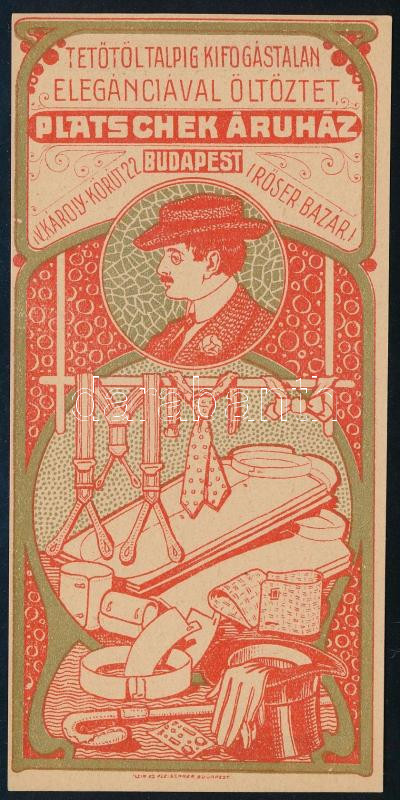 cca 1910 Platschek (divat) Áruház dekoratív szecessziós számolócédula,... https://www.darabanth.com/de/477-Fernauktion/477.0/Kunst-Dokumente-andere-Sammelgebiete/Werbungen~2000002/cca-1910-Platschek-divat-Aruhaz-dekorativ-szecesszios-szamolocedula-szep-allapotban~II3249329