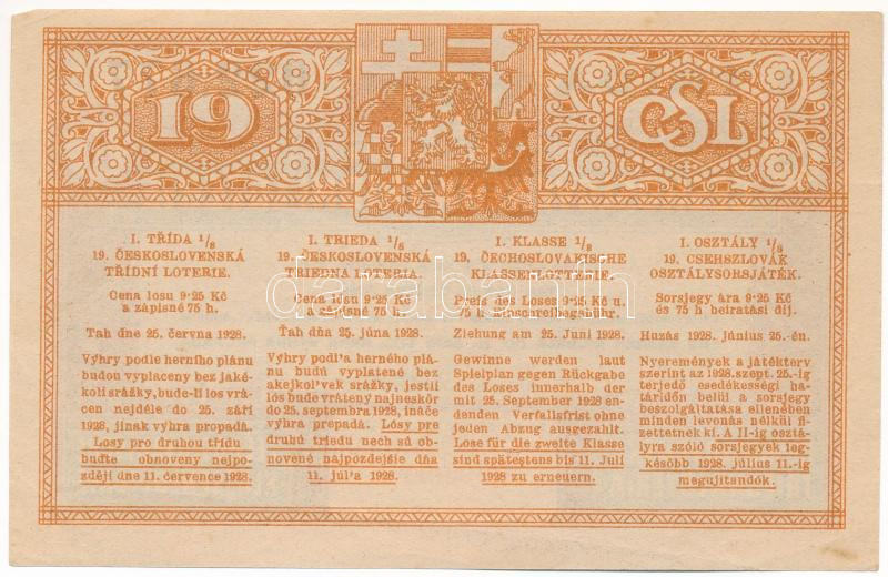 Csehszlovákia 1928. "19. Csehszlovák Osztálysorsjáték" első ... https://www.darabanth.com/de/477-Fernauktion/477.0/Numismatik/Aktien-und-Tickets~500007/Csehszlovakia-1928-19-Csehszlovak-Osztalysorsjatek-elso-osztaly-18-ad-sorsjegye-BANKOV~II3206988