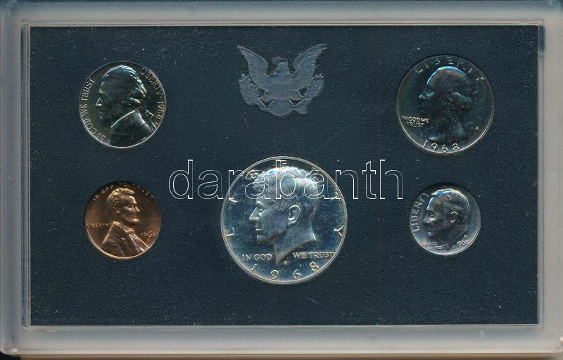 Amerikai Egyesült Államok 1968S 1c-1/2$ Cu-Ni, bronz (5xklf) forgalmi sor eredeti tokban T:PP patina, a külső papírtok viseltes