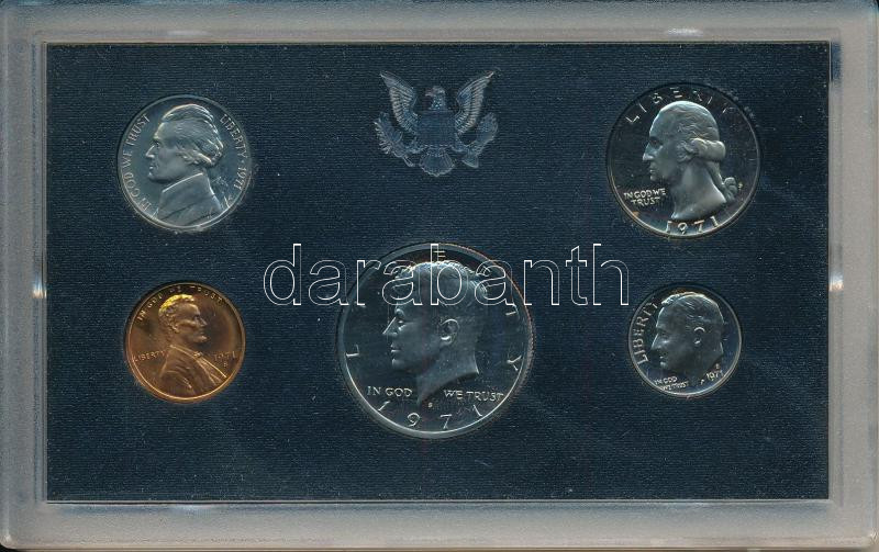 Amerikai Egyesült Államok 1971S 1c-1/2$ (5xklf) forgalmi sor műanyag tokban T:PP a külső papírtok viseltes USA 1971S 1 Cent - 1/2 Dollar (5xdiff) coin set in original plastic case C:PP worn paper case