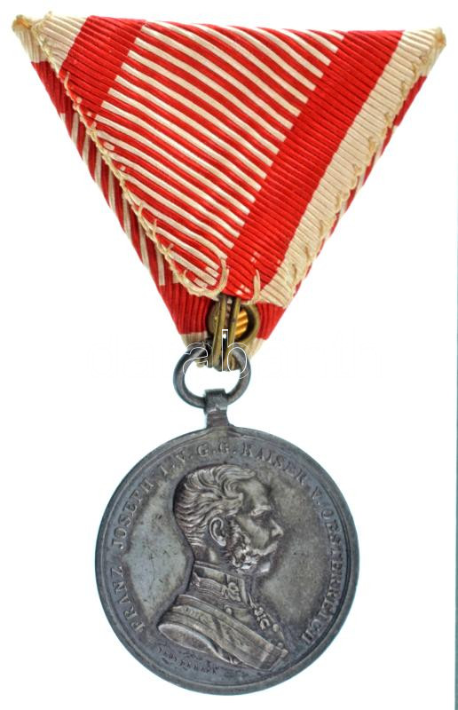 1870. "Ferenc József II. osztályú Ezüst Vitézségi Érem" (DER TAPFERKEIT) Ag (peremén fémjel) ezüst kitüntetés melllszalagon T:XF patina