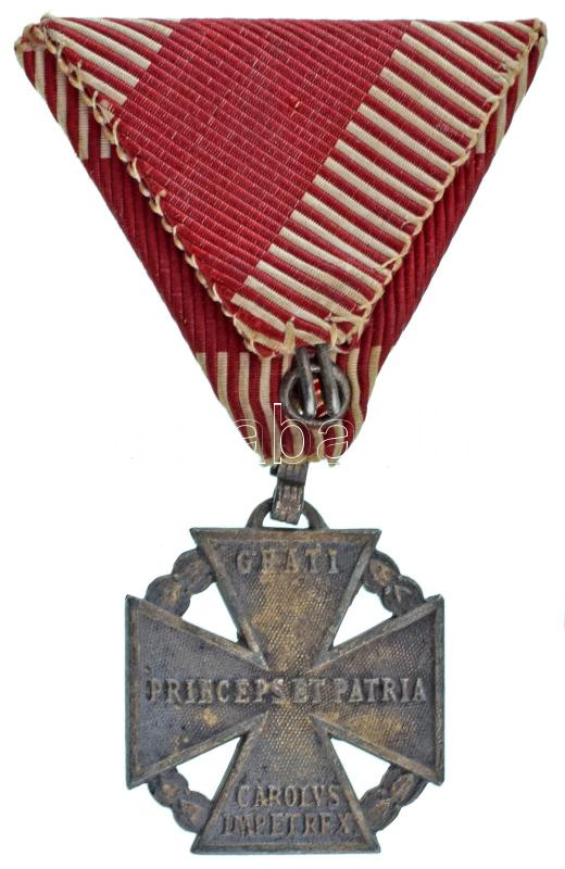 Beschreibung: 1916. "Károly-csapatkereszt" Zn kitüntetés mellszalagon T:XF patina