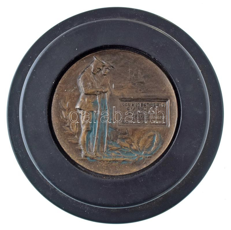 DN "Robert Beech ezredes, aki 1916 augusztusában halt meg" I. világháborús bronz emlékérem replika lakkozott fa keretben, hátoldalán akasztóval (73mm, 128mm) C:XF