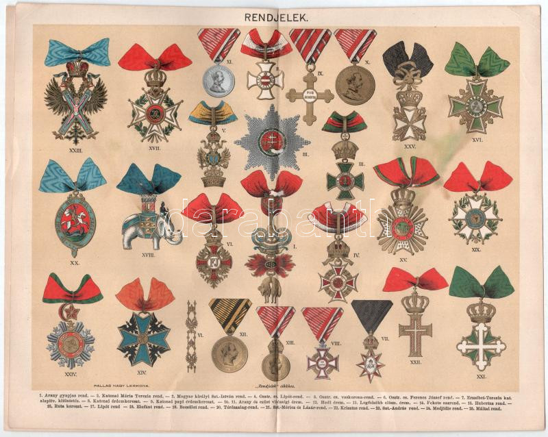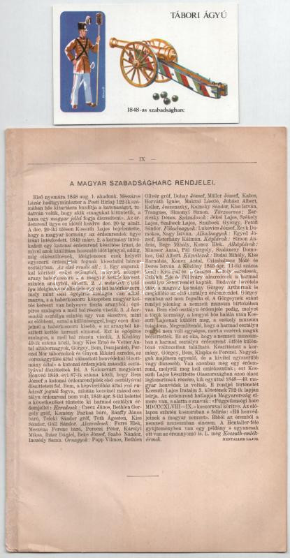 Hentaller Lajos: "A Magyar Szabadságharc Rendjelei" szócíkk két táblával (1 színes, litográf nyomat - 1 fekete-fehér), a Pallas Nagy Lexikonból(?) + 1982. évi 1848-as tematikájú zsebnaptár