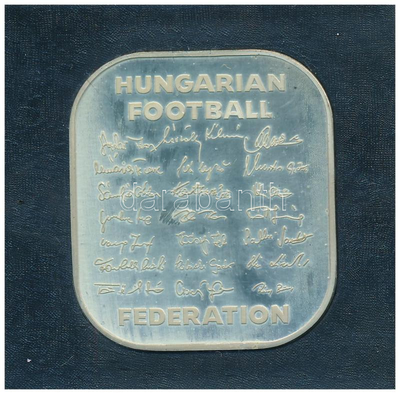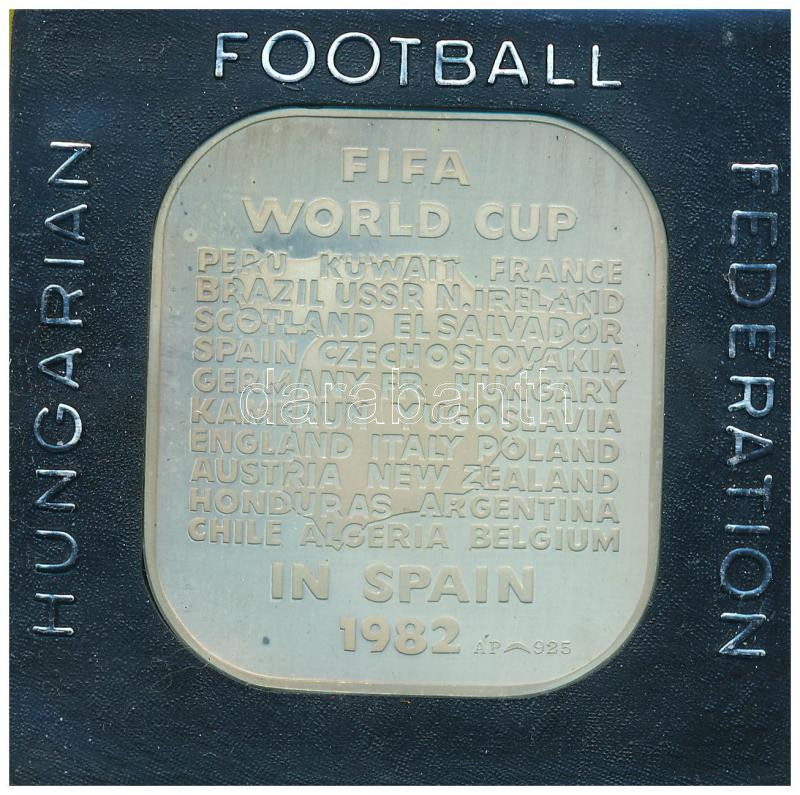 1982. "FIFA-Football VB Spanyolország" Ag emlékérem, az érme hátoldalán a magyar focisták aláírásaival, eredeti tokban (35g/0.925/36x41mm) T:AU (eredetileg PP)