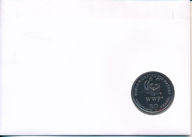 Bahamák DN (1991) "A Világ Vadvédelmi Alap (WWF) 30. évfordulója - Mesoplodon Densirostris (Állas csőröscet)" kétoldalas fém emlékérem érmés borítékban, bélyeggel és bélyegzéssel, német nyelvű ismertetővel T:PP Bahamas ND (1991) "30th Anniversary of the World Wildlife Fund - Mesoplodon Densirostris" two-sided metal commemorative medallion in envelope with stamp and cancellation, with German description C:PP