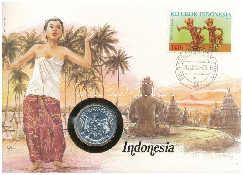 Indonézia 1961. 50s Al, felbélyegzett borítékban, bélyegzéssel, német nyelvű leírással T:AU Indonesia 1961. 50 Sen Al in envelope with stamp, with German description C:AU
