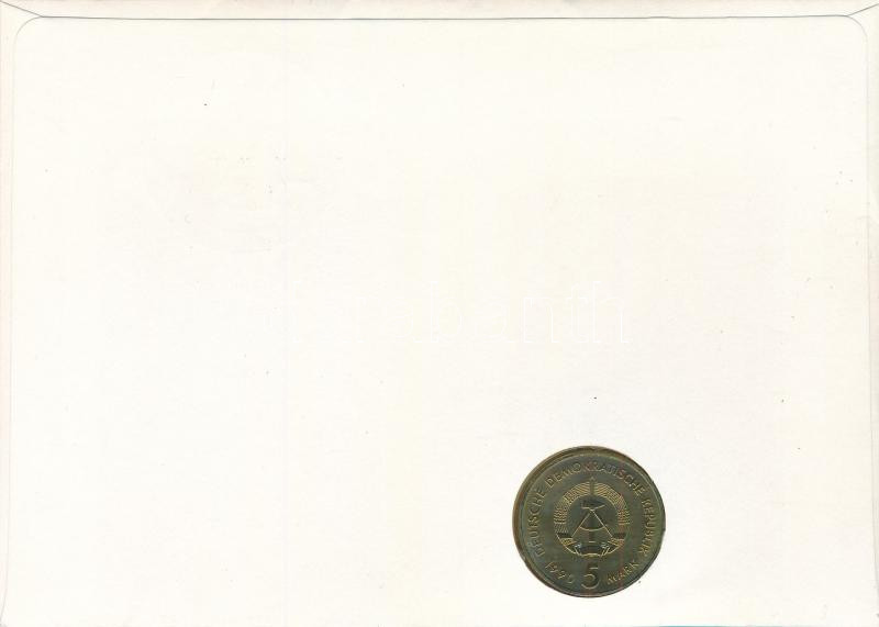 GDR 1990 5 Mark Ag "500th Anniversary of the Post" coin in envelope with stamps and cancellations C:UNC