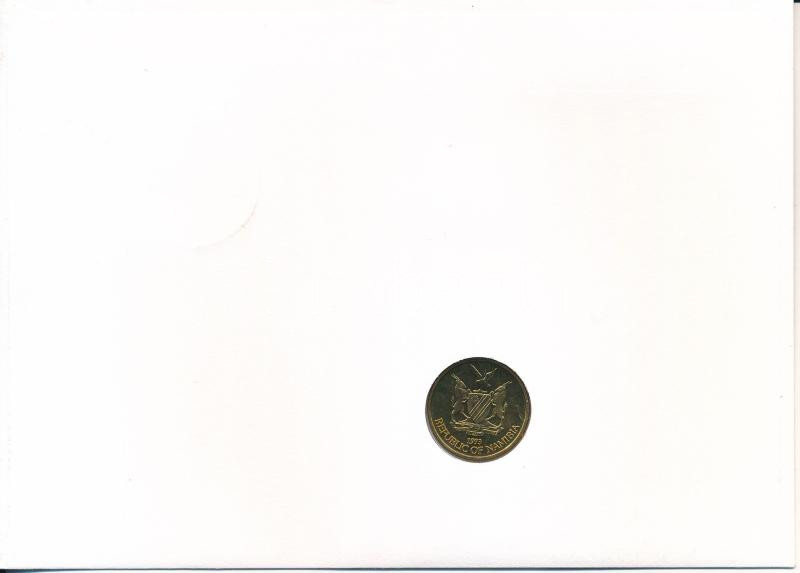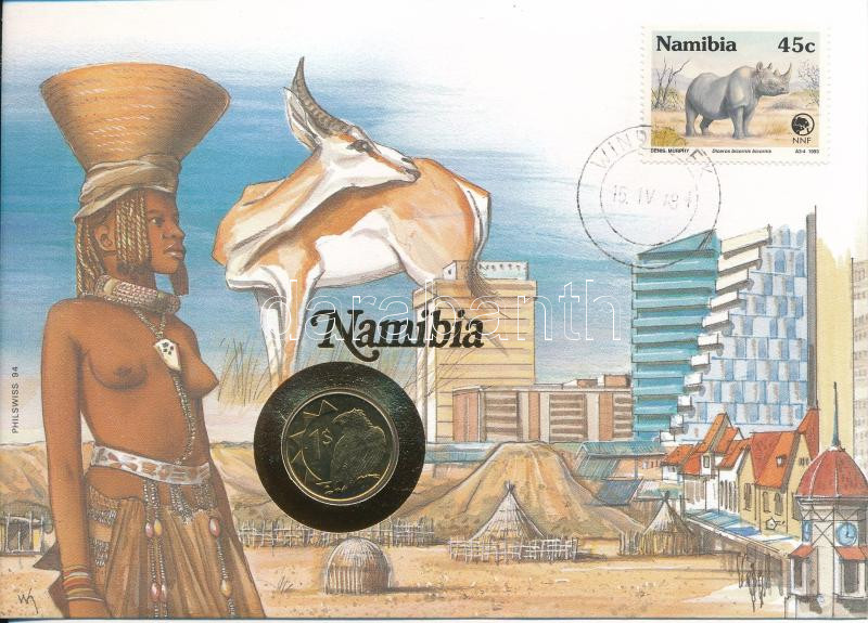 Namíbia 1993. 1D felbélyegzett borítékban, bélyegzéssel, német nyelvű leírással T:UNC Namibia 1993. 1 Dollar in envelope with stamp and cancellation, with German description C:UNC