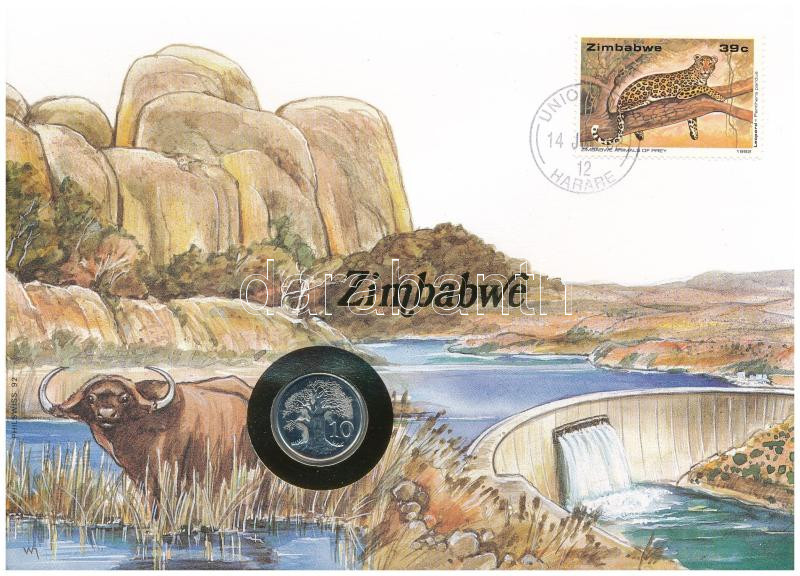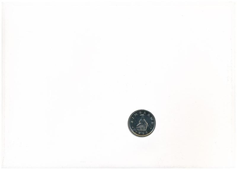 Zimbabwe 1991. 10 Cents in envelope with stamp and cancellation, with German description C:UNC