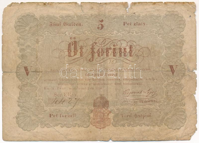Beschreibung: 1848. 5ft "Kossuth bankó" barna nyomat T:VG Adamo G109A