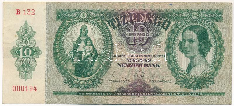 Beschreibung: 1936. 10P alacsony "B 132 000194" sorszámmal T:F