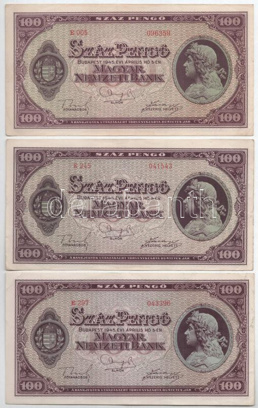 Beschreibung: 1945. 100P (3x) T:F szép papír