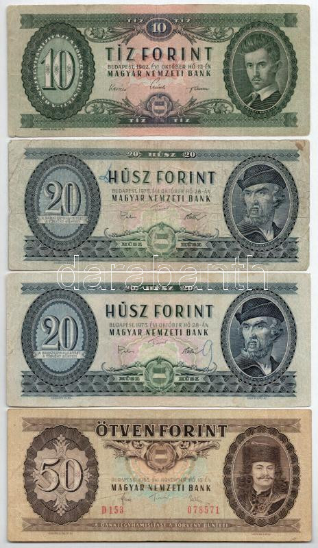 1962-2006. 10Ft - 500Ft (8x) T:F-VG https://www.darabanth.com/de/477-Fernauktion/477.0/Numismatik/Ungarische-Banknoten~500009/1962-2006-10Ft-500Ft-8x-TF-VG~II3246563