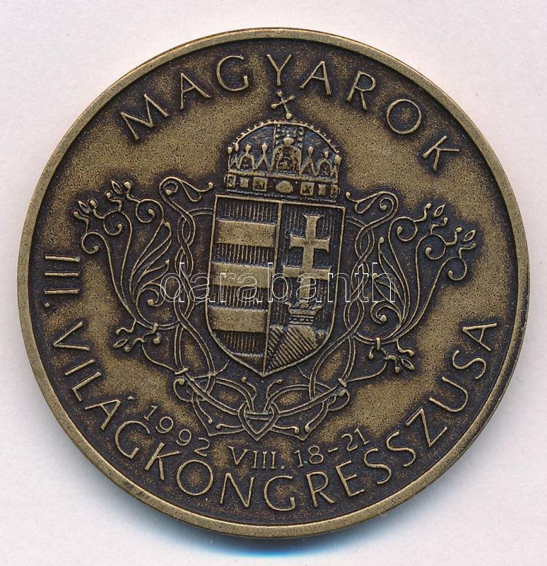 Bognár György (1944-) 1992. "Magyarok III. Világkongresszusa / Kőrösi Csoma Sándor" bronz emlékérem (42,5mm) T:AU