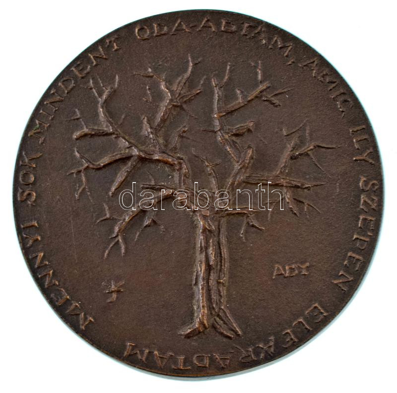 Konyorcsik János (1926-2010) 1974. "Mennyi sok mindent oda adtam amíg ily szépen elfáradtam - Ady" egyoldalas bronz emlékérem tokban (79mm) T:AU patina