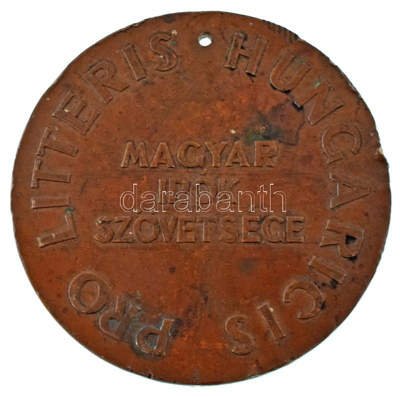Kovács Dezső (1921-) DN "Magyar Írók Szövetsége - Pro Litteris Hungaricis díj" kétoldalas bronz emlékérem (79mm) T:XF lyuk, ph.