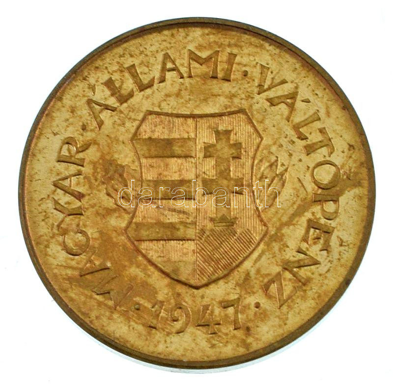 1947. 2f tombak "rozettás Artex utánveret" T:UNC,AU Hungary ... https://www.darabanth.com/de/477-Fernauktion/477.0/Numismatik/Ungarische-Munzen-und-Munzen-mit-ungarischem-Munzzeichen~500010/1947-2f-tombak-rozettas-Artex-utanveret-TUNC-AU-Hungary-1947-2-Filler-Cu-Zn-rosette-Artex-r~II3223461