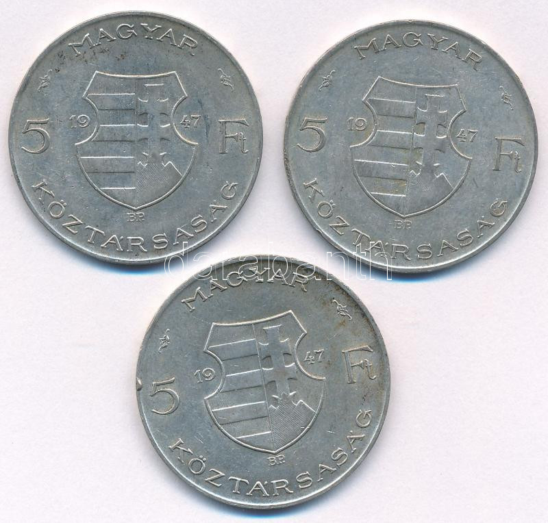 Beschreibung: 1947. 5Ft Ag "Kossuth" (3x) T:XF,VF kis ph. + karc