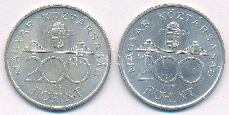 Beschreibung: 1993. 200Ft Ag "MNB" (2x) T:AU,XF Adamo F13