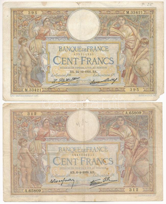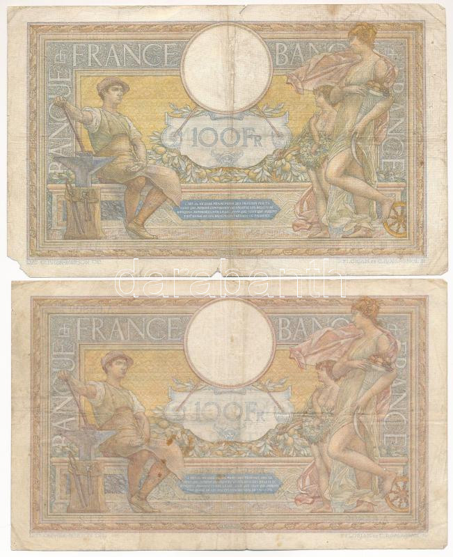 Beschreibung: Franciaország 1931-1939. 100Fr (2xklf) T:F,VG France 1931-1939. 100 Francs (2xdiff) C:F,VG