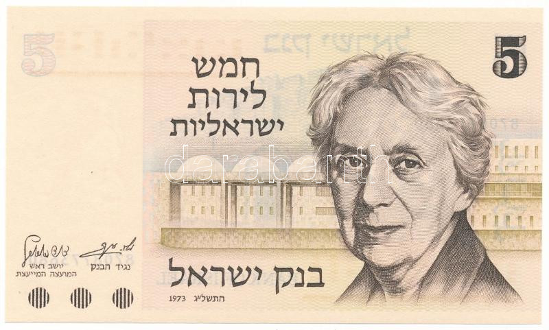 Israel 1973. 5 Pounds... https://www.darabanth.com/de/477-Fernauktion/477.0/Numismatik/Weltweit-Banknoten~500016/Izrael-1973-5P-8708773680-TUNC-AU-Israel-1973-5-Pounds-8708773680-CUNC-AU-Krause-38~II3248765