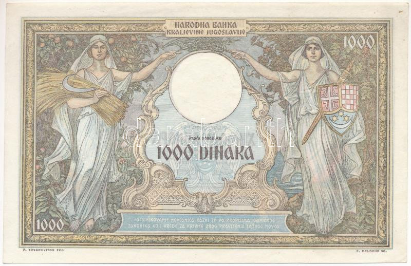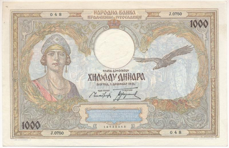 Yugoslavia 1931. 1000 ... https://www.darabanth.com/de/477-Fernauktion/477.0/Numismatik/Weltweit-Banknoten~500016/Jugoszlavia-1931-1000D-TXF-hajtatlan-tulyuk-Yugoslavia-1931-1000-Dinara-CXF-unfolded-pinhol~II3250384