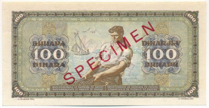 Yugoslavia 1946. 100 Dinara with red "SPECIMEN" overprint C:AU