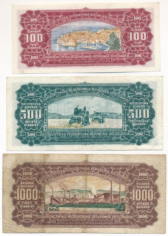 Yugoslavia 1963. 100 Dinara + 500 Dinara + 1000 Dinara C:XF-VG