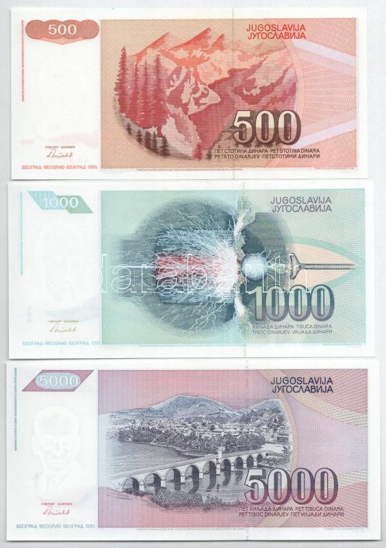 Jugoszlávia 1991. 500D + 1000D + 5000D T:UNC
