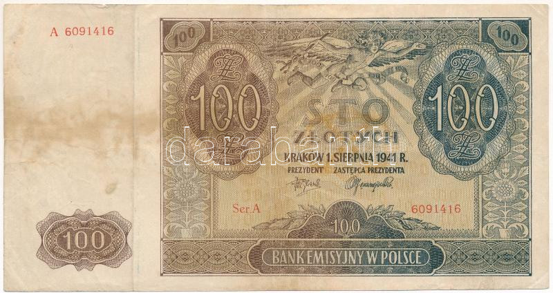 Lengyelország / Német megszállás 1941. 100Zl T:F folt Poland / German ... https://www.darabanth.com/de/477-Fernauktion/477.0/Numismatik/Weltweit-Banknoten~500016/Lengyelorszag-Nemet-megszallas-1941-100Zl-TF-folt-Poland-German-occupation-1941-100-Zloty~II3203463