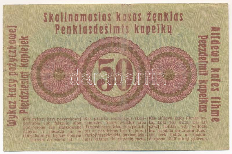 Lithuania / World War I / German occupation / Darlehnskasse Ost, Posen 1916. 50 Kopeks C:F