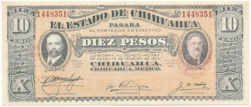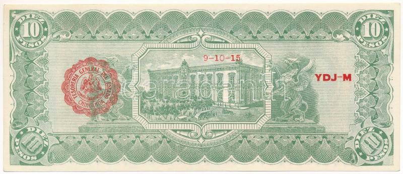Mexikó / Forradalom / Chihuahua 1915. 10P "N" sorozat, hátoldalán piros karélyos felülbélyegzéssel és dátummal T:AU