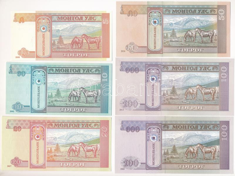Mongolia 2000-2017. 5 Tögrög - 100 Tögrög (6pcs, 5xdiff) C:UNC-AU