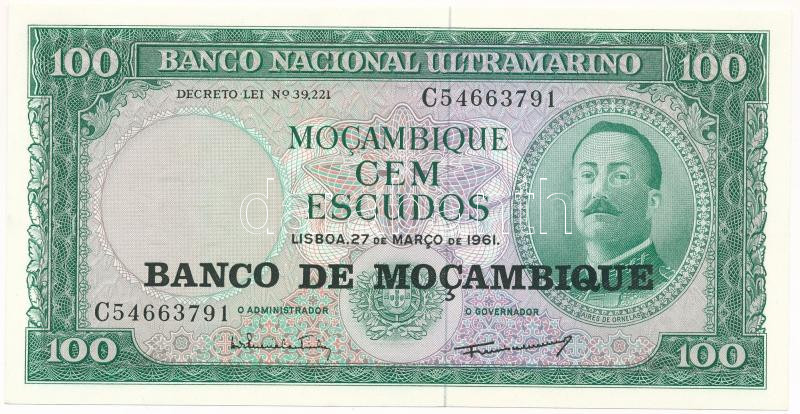 Mozambik 1976. (1961) 100E fekete "BANCO DE MOCAMBIQUE" felülbélyegzéssel T:AU