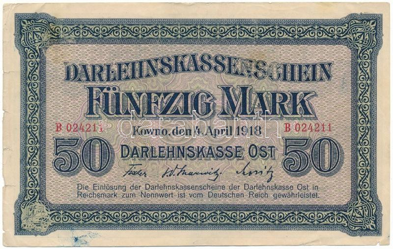Német Birodalom / I. világháború / Keleti Főparancsnokság / Kowno (Kaunas) 1918. 50M T:F beszakadások, de erős papír