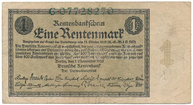 Beschreibung: Német Harmadik Birodalom 1935. 1M T:F,VG / German Third Reich 1935. 1 Rentenmark C:F,VG Krause P#161