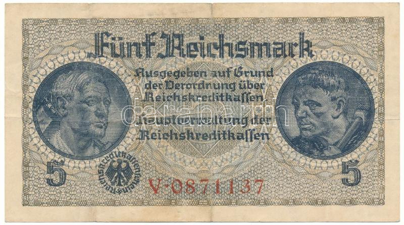 Német Harmadik Birodalom / Német megszállt területek 1940-1945. 5M T:F beszakadás German Third Empire / German Occupied Territories 1940-1945. 5 Reichsmark C:F tear Krause P#R138