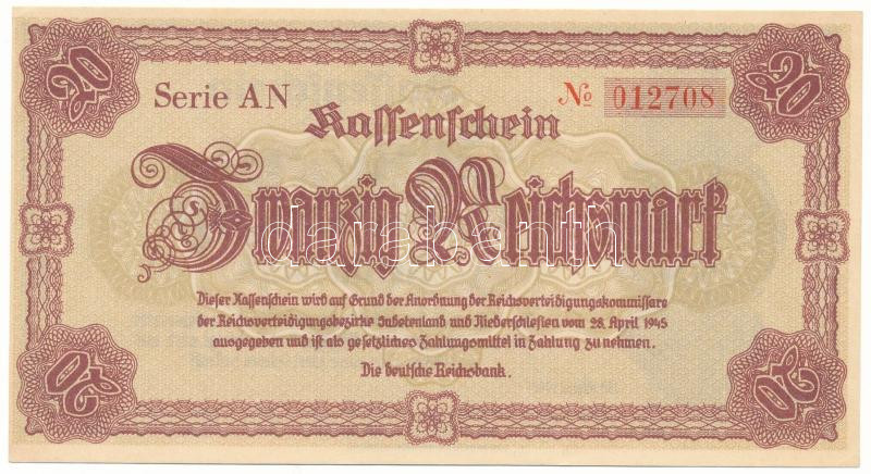 Német Harmadik Birodalom / Szudéta-vidék és Alsó-Szilézia 1945. 20M T:F szép papír