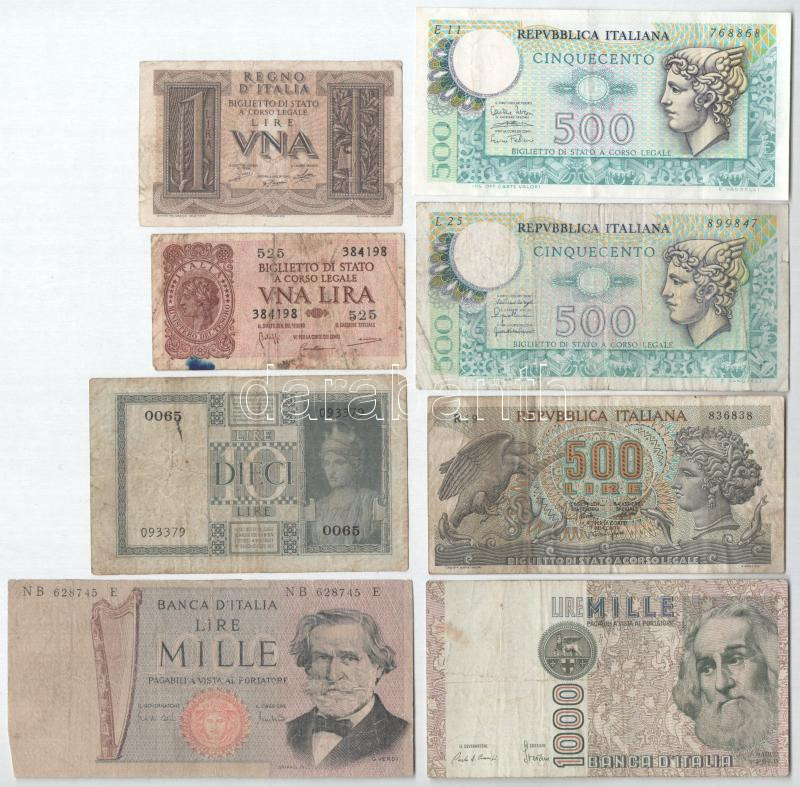 Beschreibung: Olaszország 1935-1982. 1L-1000L (8x) T:F-VG Italy 1935-1982. 1 Lira - 1000 Lire (8x) C:F,VG