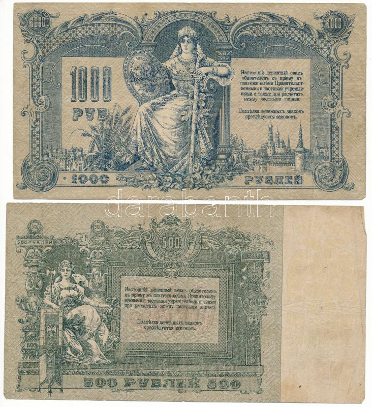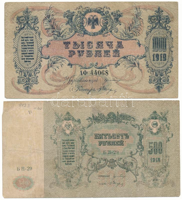 Orosz Polgárháború / Dél-Oroszország / Gyenyikin és Wrangel hadserege 1918. 500R + 1919. 1000R T:VG Russian Civil War / South Russia / Army of Denikin and Wrangel 1918. 500 Rubles + 1919. 1000 Ruble C:VG Krause S415, S418