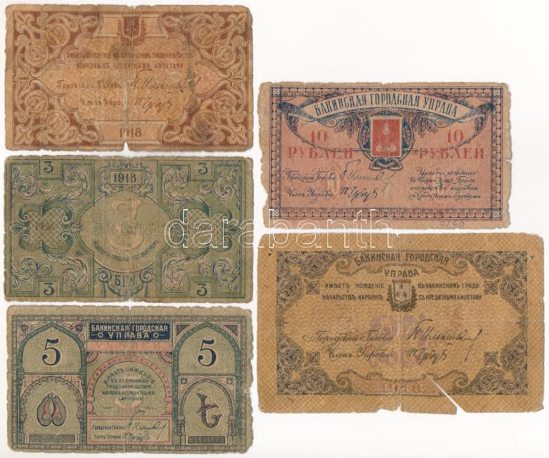 Orosz Polgárháború / Transzkaukázia / Baku városi adminisztráció 1918. 1R-25R (5xkl) T:G Russian Civil War / Transcaucasia / Baku City Managment 1918. 1 Rubel - 25 Rubles (5xdiff) C:G Krause P# S721-S724