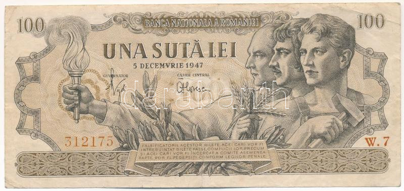 Romania 1947. December 5th 100 Lei "W.7 312175" C:F