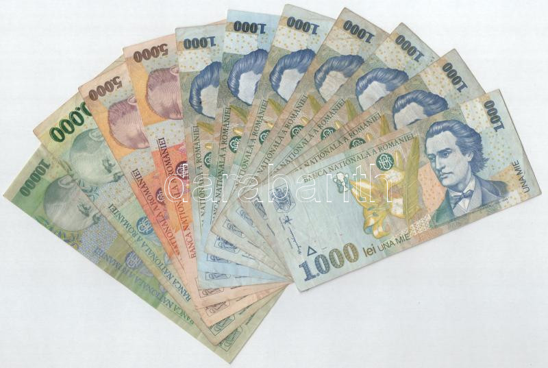 Románia 1998. 1000L (7x) + 1998. 5000L (2x) + 1999. 10.000L + 2000. 10... https://www.darabanth.com/de/477-Fernauktion/477.0/Numismatik/Weltweit-Banknoten~500016/Romania-1998-1000L-7x-plus-1998-5000L-2x-plus-1999-10000L-plus-2000-10000L-TF-firka-Romania-199~II3243012
