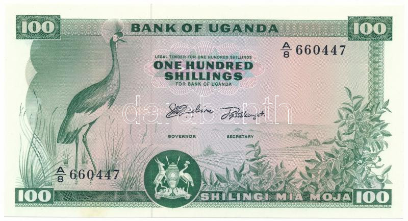 Uganda 1966. 100 S... https://www.darabanth.com/de/477-Fernauktion/477.0/Numismatik/Weltweit-Banknoten~500016/Uganda-1966-100Sh-A8-660447-TUNC-AU-Uganda-1966-100-Shilling-A8-660447-CUNC-AU-Krause-5~II3246714