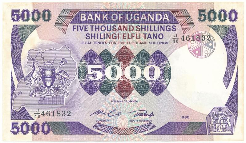 Uganda 1986. 5000Sh "J/48 461832" T:UNC