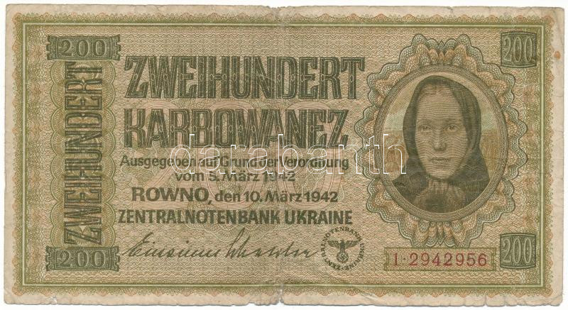 Ukr... https://www.darabanth.com/de/477-Fernauktion/477.0/Numismatik/Weltweit-Banknoten~500016/Ukrajna-Nemet-megszallas-1942-200K-1-2942956-TVG--Ukraine-German-occupation-1942-200-Ka~II3246477